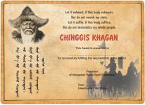 Диплом посвящен 750-летию древнего шедевра «Тайная история монголов». Для его получения необходимо представить доказательства проведенных радиосвязей с одной монгольской радиостанцией и 13 станциями из различных DXCC стран, используя любые буквы из суффиксов которых нужно составить слова: CHINGGIS KHAGAN (JA7CAQ = C, WB3DFH = H, DL5EIs = I, и т.д.). Основные требования дипломной программы МФРС: Стоимость диплома 6 US$ или 10 IRC. Оплату посылать только заказной почтой. Засчитываются связи, проведенные после 1 января 1958 года на любых диапазонах любыми видами модуляции. Наблюдатели получают диплом на тех же условиях. Заявку и оплату направлять по адресу: MRSF. P.O. Box 573, Ulaabaatar 16092 Mongolia. ОБЯЗАТЕЛЬНО ИСПОЛЬЗУЙТЕ ЗАКАЗНУЮ КОРРЕСПОНДЕНЦИЮ!