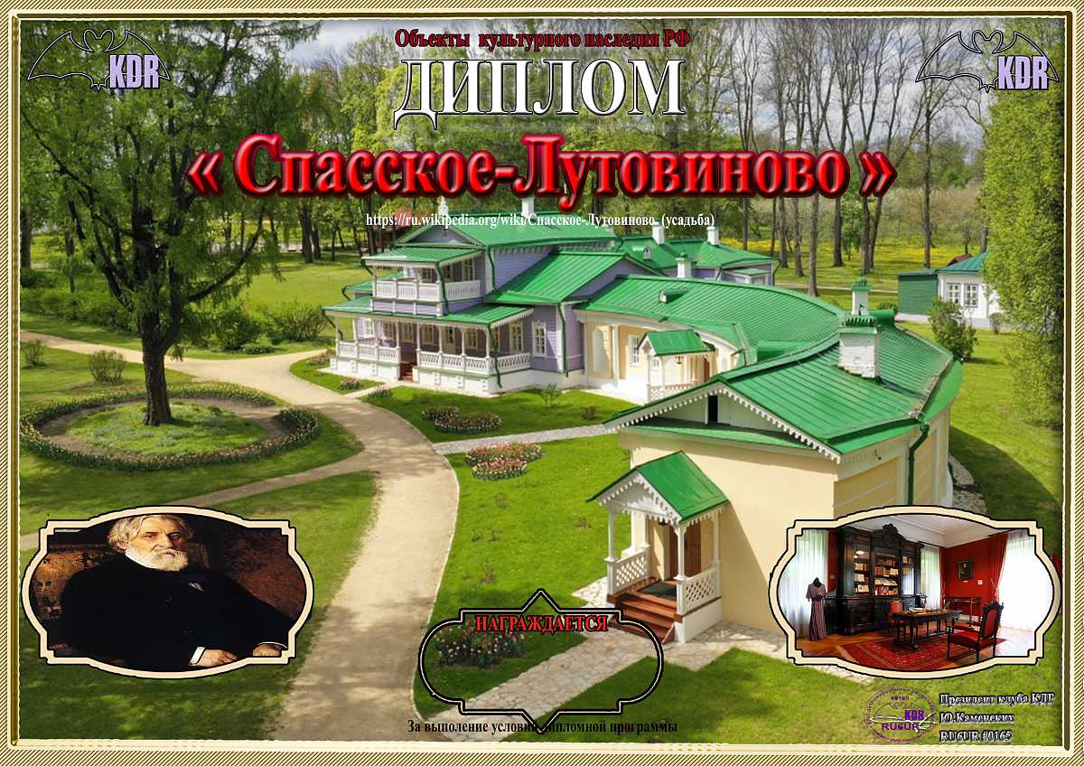 В рамках дипломной программы «Объекты культурного наследия России федерального значения» вашему вниманию предоставляется диплом «Спасское-Лутовиново», для выполнения условий необходимо набрать 100 очков. Связи на диплом засчитываются с 22 мая 2024 года, диплом бессрочный. Очки начисляются: