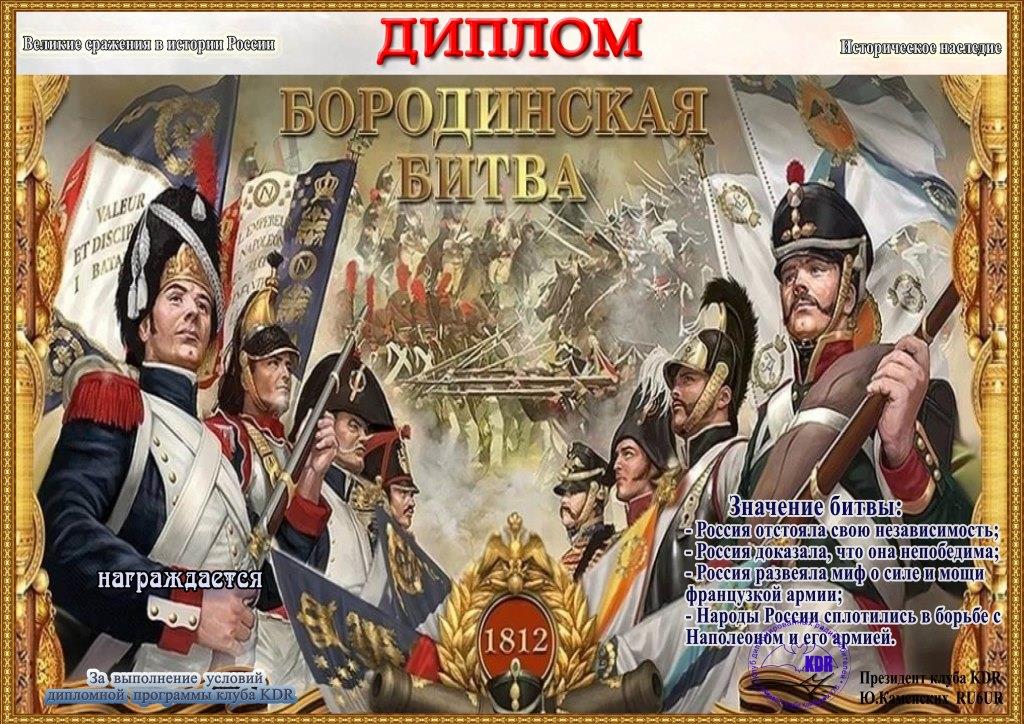В рамках дипломной программы Клуба дипломированных радиолюбителей «Главные сражения в истории России» вашему вниманию предоставляется диплом «Бородинская битва» - 1812 год.
