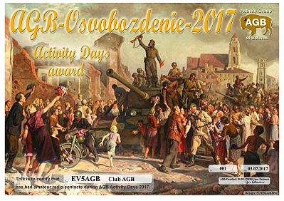 Для получения Диплома - Членам Клуба AGB надо провести не менее 100 QSO в Днях активности. Дни активности: 01 - 10 июля 2017г.