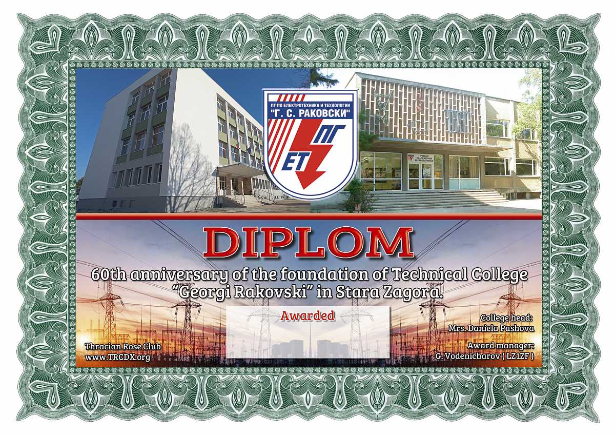Положение о дипломе “60th Anniversary of the foundation of Technical College Georgi Rakovski”