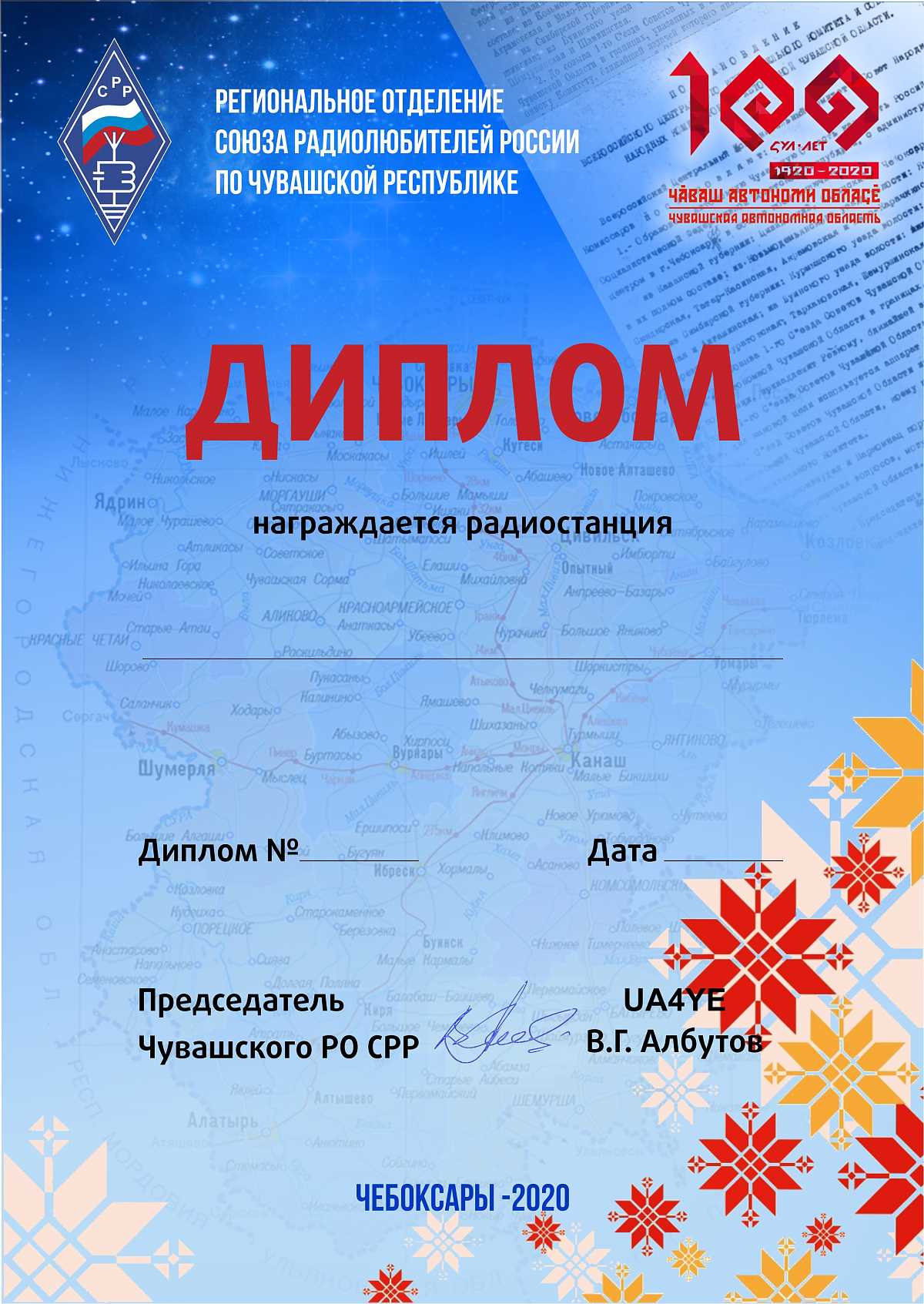 С 1 по 30 июня 2020 года будут проходить дни активности р/любителей Чувашии посвященные 100-летию образования Чувашской автономии, учрежден диплом.