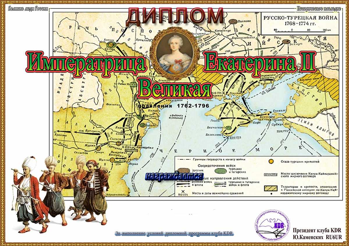 В рамках дипломной программы Клуба дипломированных радиолюбителей «Великие люди России - Историческое наследие» (первая часть программы «От Рюрика до Николая II») вашему вниманию предоставляется диплом «Императрица Екатерина II Великая», для получения которого необходимо набрать 1000 очков. Связи на диплом засчитываются с 14 апреля 2021 года, диплом бессрочный.