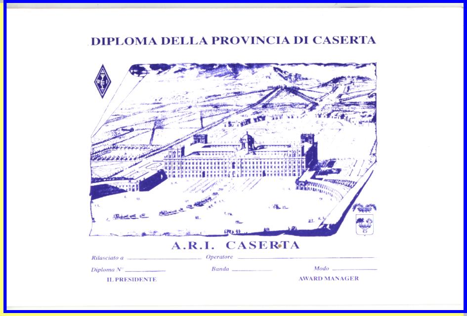 Диплом присуждается радиолюбителям всего мира, проведшим и подтвердившим двухсторонние радиосвязи с членами A.R.I. Caserta на всех любительских диапазонах и выполнивших настоящие условия.