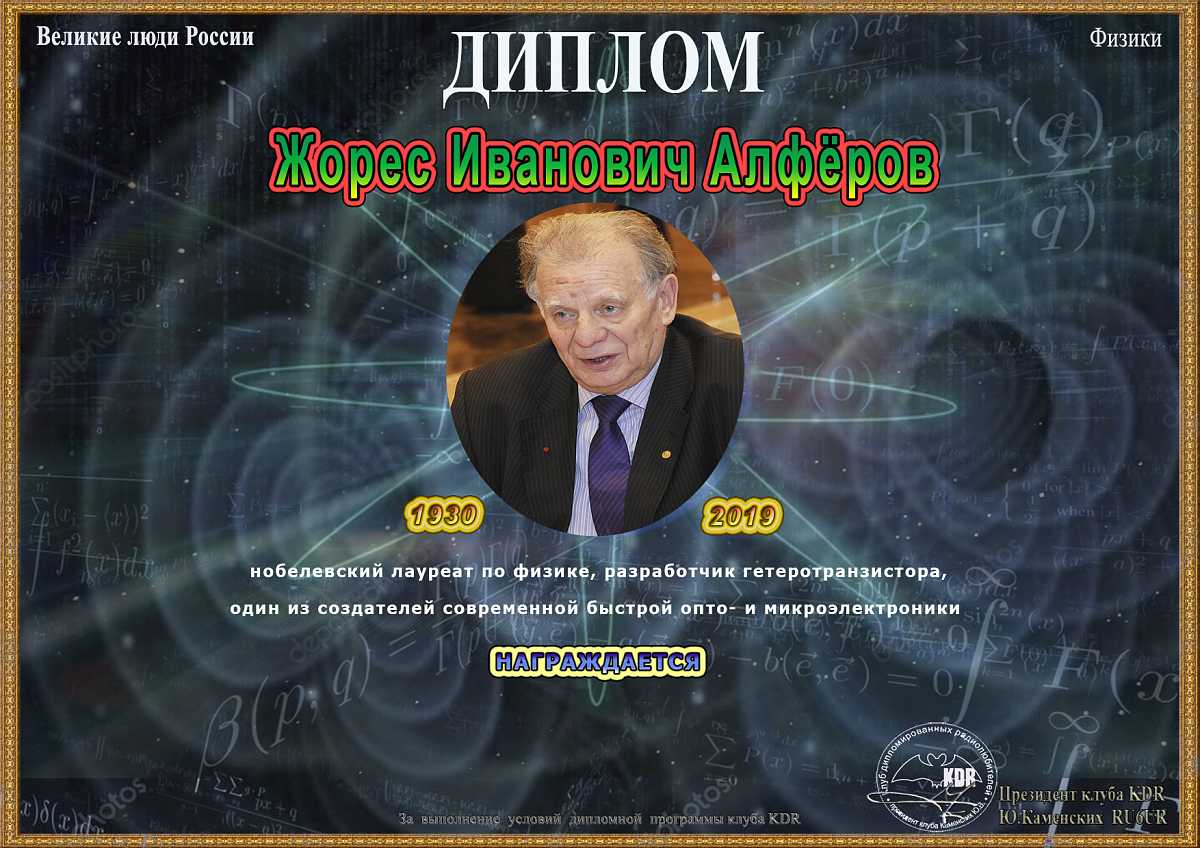 В рамках дипломной программы «Великие люди России – Историческое наследие», часть II «Ученые России. Физики» вашему вниманию предоставляется диплом «Жорес Иванович Алферов», для получения которого необходимо набрать 1000 очков. Связи на диплом засчитываются с 24 августа 2022 года, диплом бессрочный.