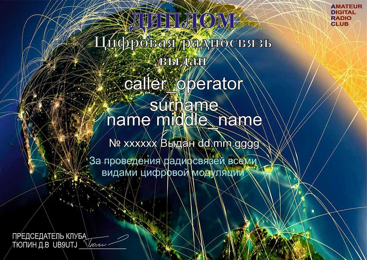 Клуб радиолюбителей «Amateur Digital Radio Club» для популяризации любительской радиосвязи, в весенне-летний период, среди членов клуба и радиолюбителей всего мира, учредил диплом "Цифровая радиосвязь".