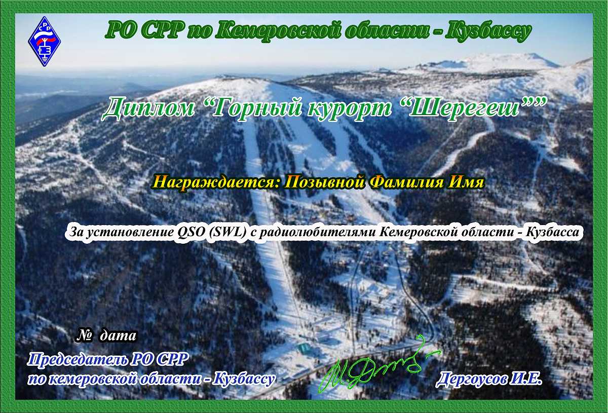 Диплом «Горный курорт «Шерегеш»» учреждён региональным отделением Союза радиолюбителей России по Кемеровской области – Кузбассу. Входит в дипломную программу «Достопримечательности Кузбасса»