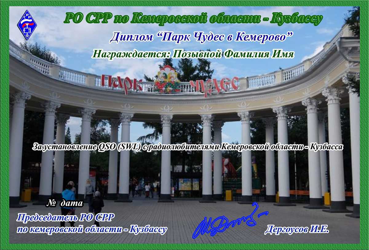 Диплом «Парк Чудес в Кемерово» учреждён региональным отделением Союза радиолюбителей России по Кемеровской области – Кузбассу. Входит в дипломную программу «Достопримечательности Кузбасса»