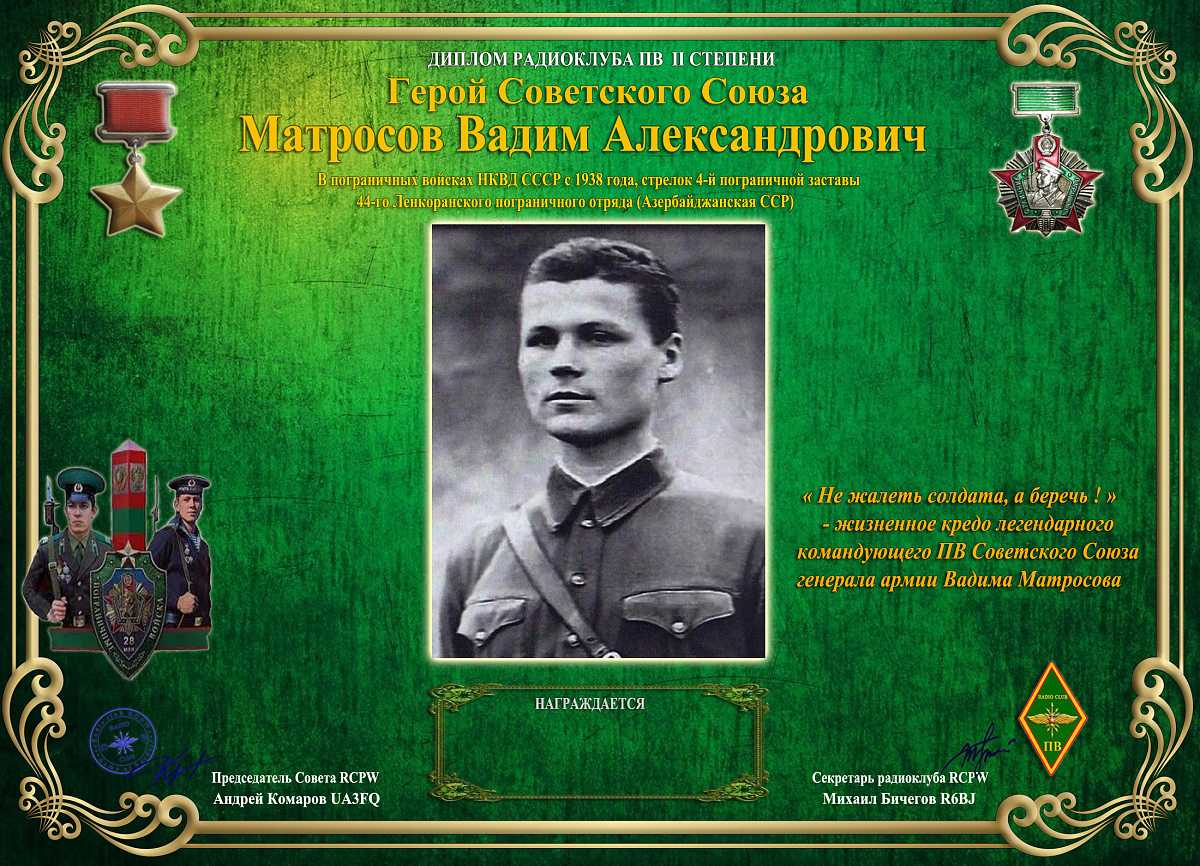 В рамках дипломной программы клуба RCPW учрежден очередной диплом – «Герой Советского Союза Матросов Вадим Александрович».