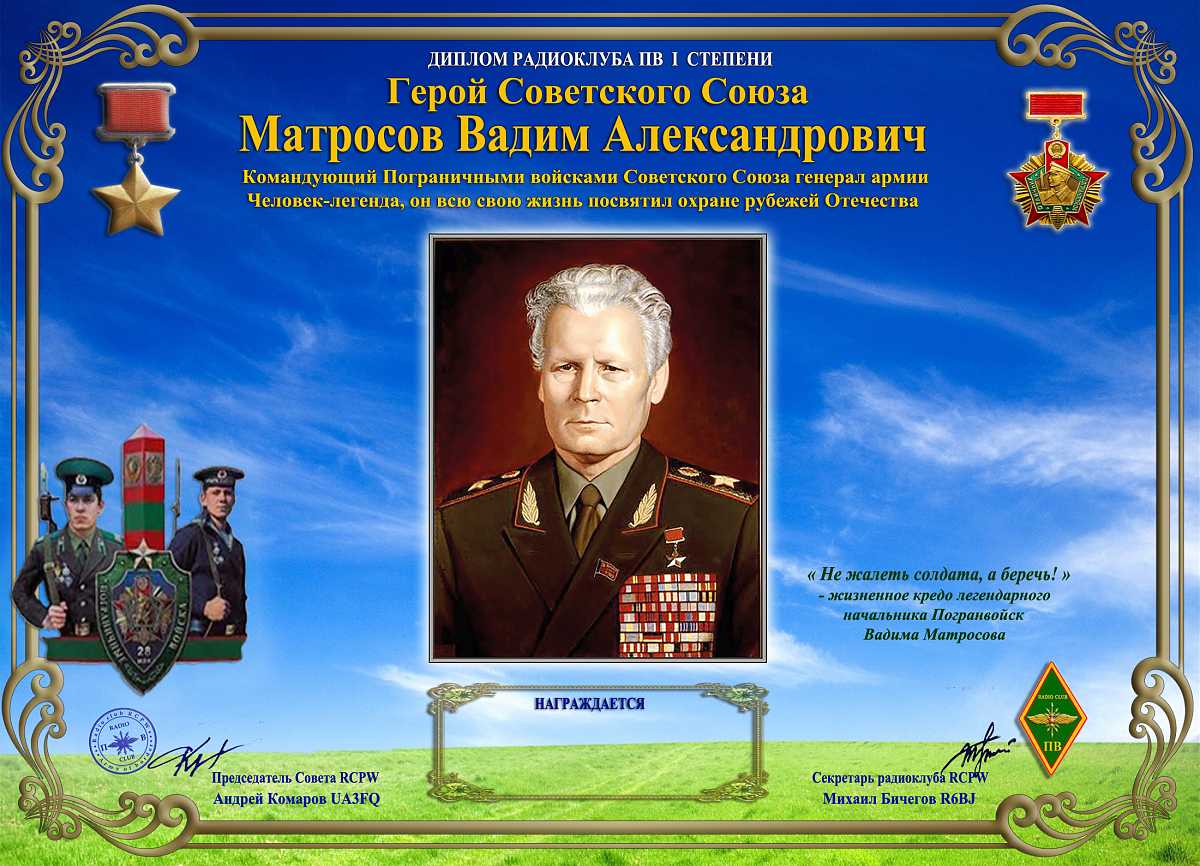 В рамках дипломной программы клуба RCPW учрежден очередной диплом – «Герой Советского Союза Матросов Вадим Александрович».