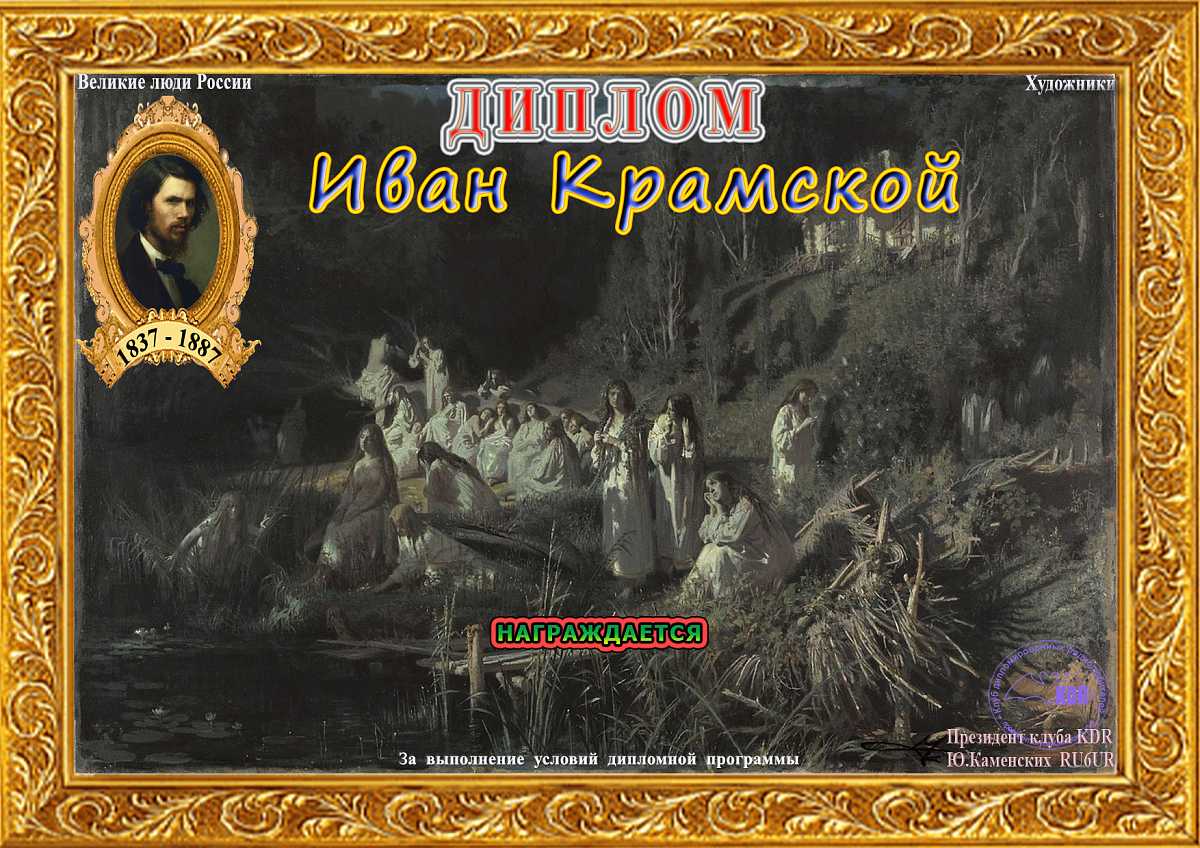 В рамках дипломной программы «Великие люди России – Историческое наследие», часть V «Художники» вашему вниманию предоставляется диплом «Иван Крамской», для получения которого необходимо набрать 1000 очков. Связи на диплом засчитываются с 25 октября 2023 года, диплом бессрочный.