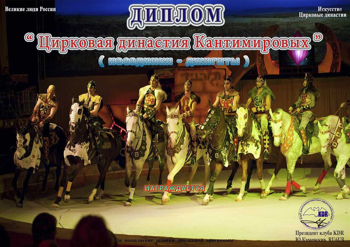 В рамках дипломной программы «Великие люди России – Историческое наследие», часть VI «Искусство - Цирк» вашему вниманию предоставляется диплом «Цирковая династия Кантимировых», для получения которого необходимо набрать 1000 очков. Связи на диплом засчитываются с 31 января 2024 года, диплом бессрочный.