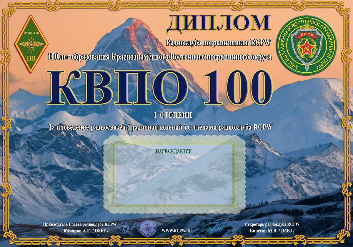 В связи со 100-летием Краснознамённого Восточного пограничного округа (КВПО) RCPW с 00.00 UTC 23 февраля по 23.59 UTC 3 марта 2024 г. проводит дни активности. Учреждены дипломы I и II степени.