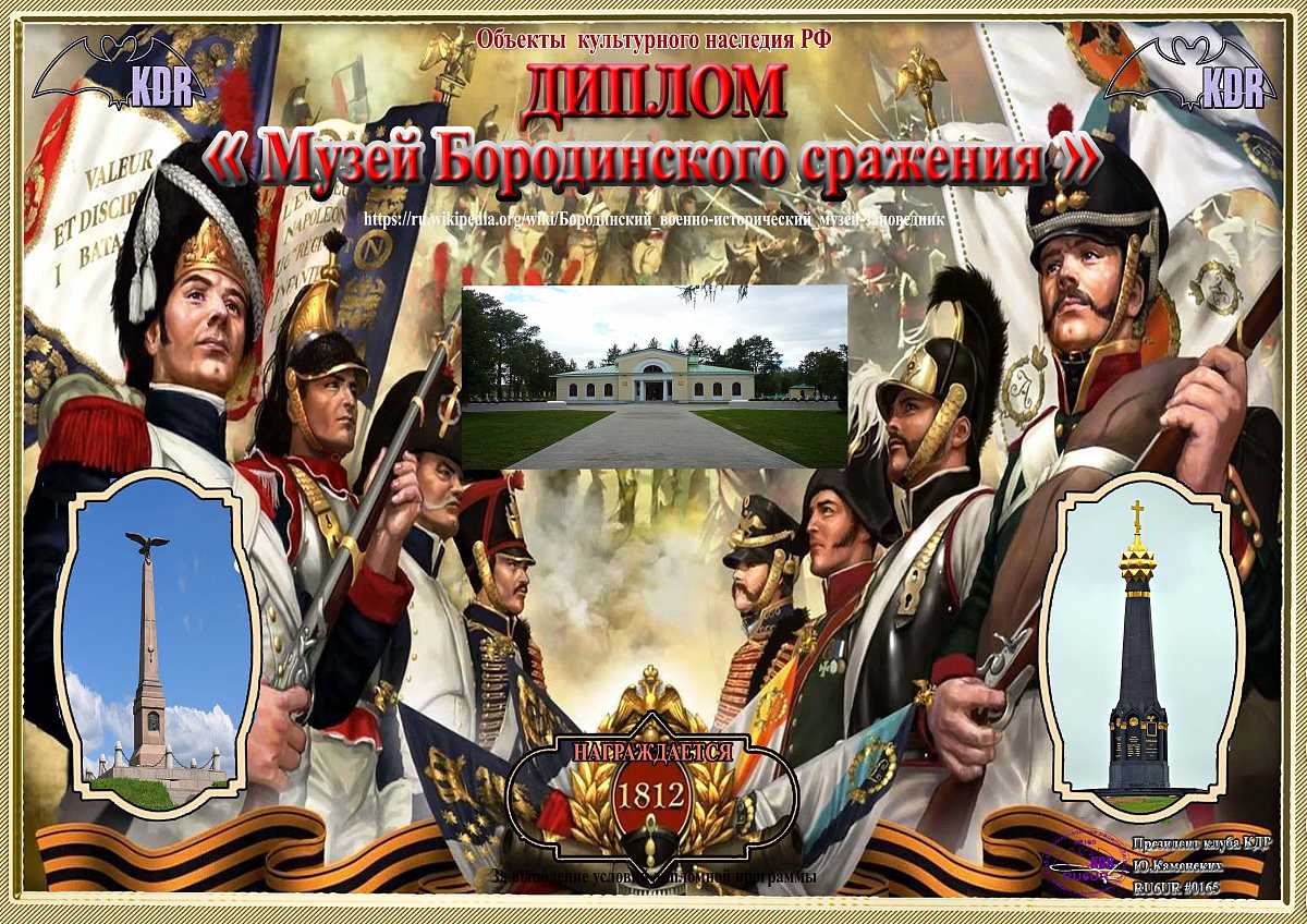 В рамках дипломной программы «Объекты культурного наследия России федерального значения» вашему вниманию предоставляется диплом «Музей Бородинского сражения», для выполнения условий необходимо набрать 100 очков. Связи на диплом засчитываются с 17 апреля 2024 года, диплом бессрочный. Очки начисляются: