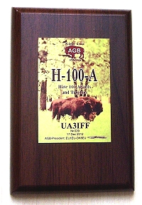 Серия трофеев "H-100-A" ... "H-1000-A" присуждается за общее колличество полученных Вами дипломов, трофеев, медалей и призов (так же и за соревнования), на все Ваши позывные (и бывшие и существующий сегодня).