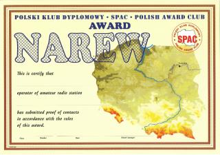 Диплом выдается за связи (наблюдения) с повятами, расположенными вдоль реки Нарев.