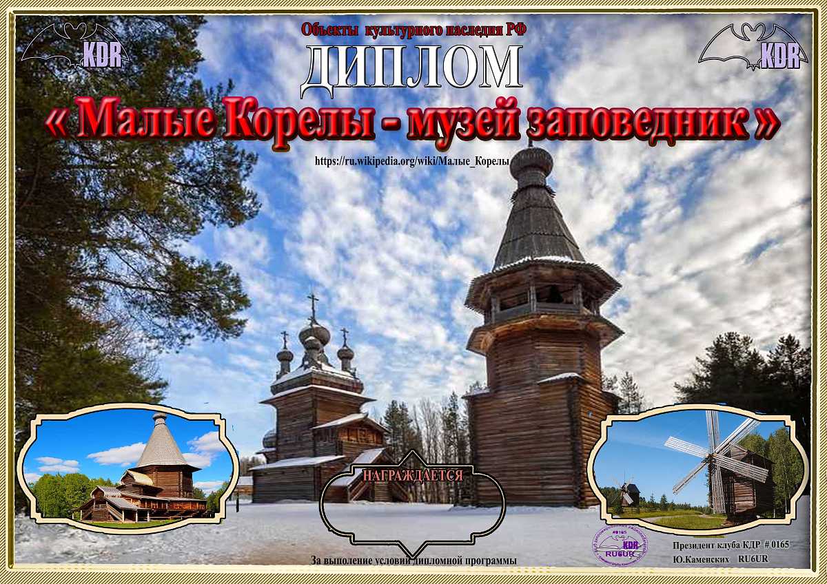 В рамках дипломной программы «Объекты культурного наследия России федерального значения» вашему вниманию предоставляется диплом «Малые Корелы», для выполнения условий необходимо набрать 100 очков. Связи на диплом засчитываются с 8 мая 2024 года, диплом бессрочный. Очки начисляются: