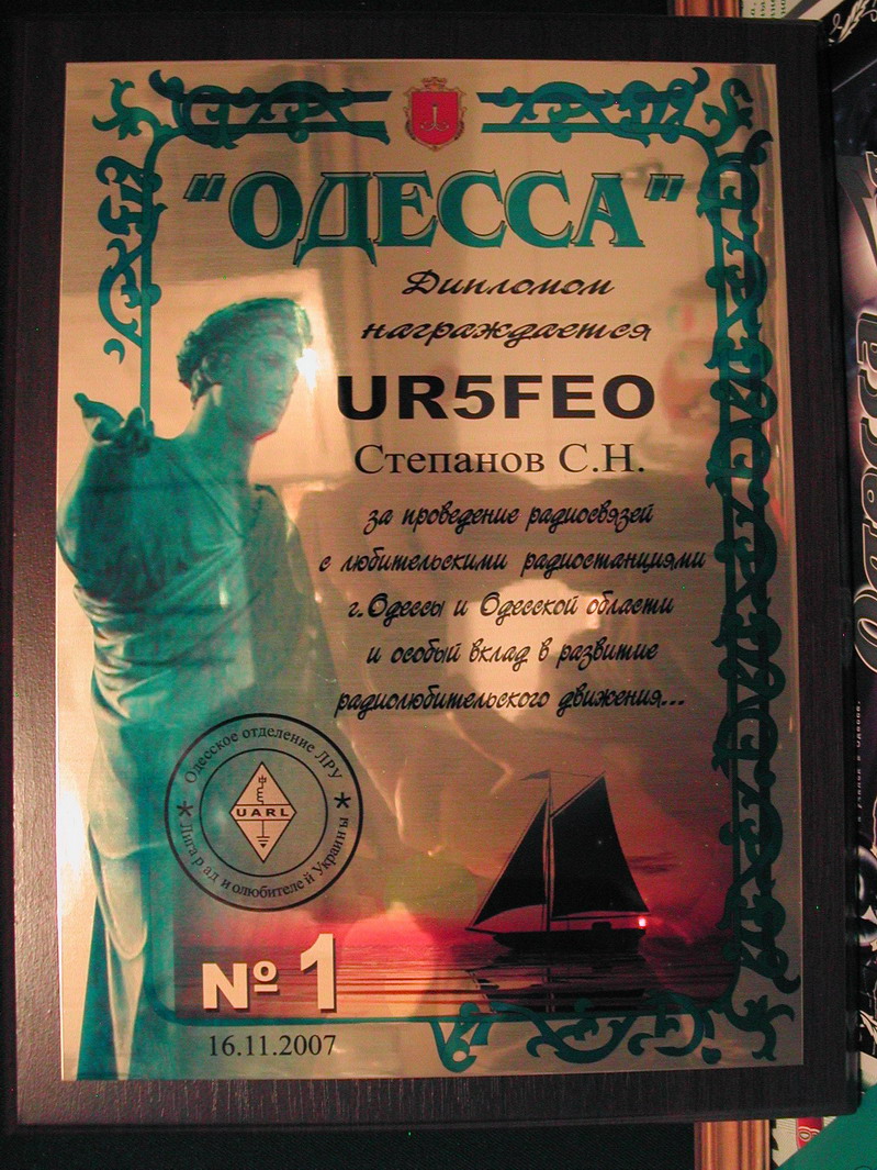 Плакетка "Одесса" - Odessa Plaque - учрежден Одесским отделением Лиги Радиолюбителей Украины. Выдается радиолюбителям (наблюдателям) всего мира за установление двусторонних радиосвязей (наблюдений) с любительскими радиостанциями г. Одесса и Одесской области.