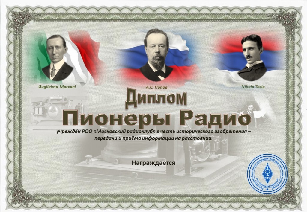 На Диплом «Пионеры Радио» засчитываются QSO/SWL, проведенные любыми видами излучения на любых любительских диапазонах с 1 июля 2013 года.