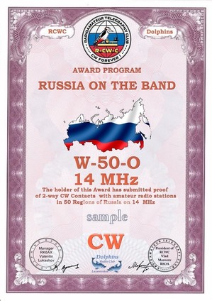 Дипломы выдаются за работу телеграфом (CW) с 50 – ю различными областями и административными образованиями России (края, республики).