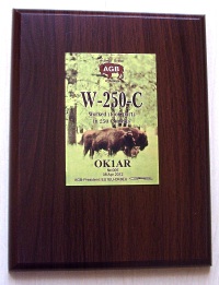 Трофеи сделаны из специальной доски, имеющей внешний вид дорогой древесины (основа поставляется из Германии) и имеет тонкую металлическую шильду с золотистым металлическим оттенком, что делает вид очень привлекательным. Оригинальный дизайн позволит Вам гордиться этим Троффи.