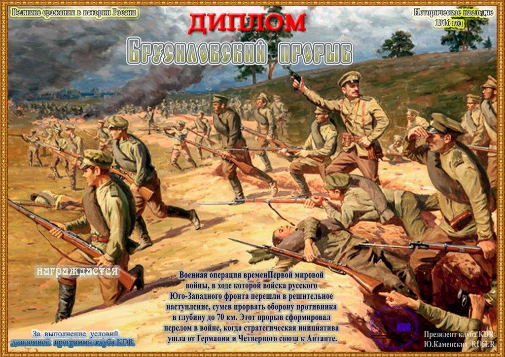 В рамках дипломной программы Клуба дипломированных радиолюбителей «Главные сражения в истории России» вашему вниманию предоставляется диплом «Брусиловский прорыв» - 1916 год.