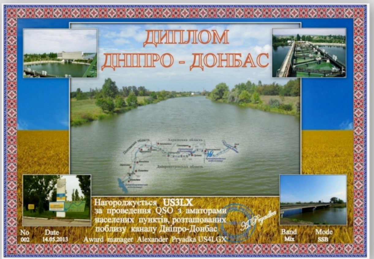 Диплом «Дніпро - Донбас» учрежден радиолюбителем Александром Прядка US4LGX и выдается за выполнение на КВ одного из следующих условий: