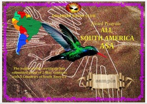 Дипломная серия «ВСЯ ЮЖНАЯ АМЕРИКА» учреждена клубом «Дельфины» п. Лазаревское и включает в себя 6 дипломов. Для получения дипломов нужно провести двухсторонние радиосвязи (наблюдения) с 5, 10, 15, 20 25 странами Южной Америки.