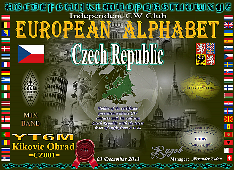 Collect 26 stations working from any one country of the European continent by the last letter Callsign from A to Z on one or more bands.