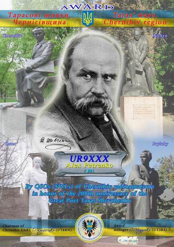 За радиосвязи (наблюдения) будет выдаваться диплом "Путь Тараса. Черниговщина" (на укр. - "Тарасові шляхи. Чернігівщина"). Для его получения необходимо набрать 200 очков.