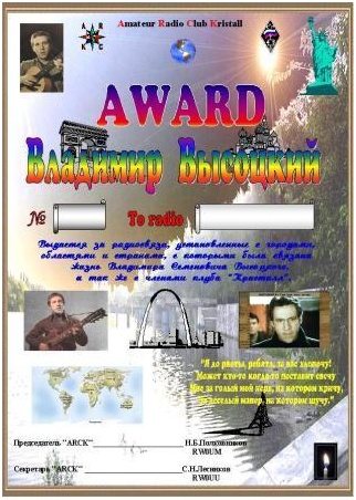 Диплом учреждён радиоклубом "Кристалл" в память о замечательном