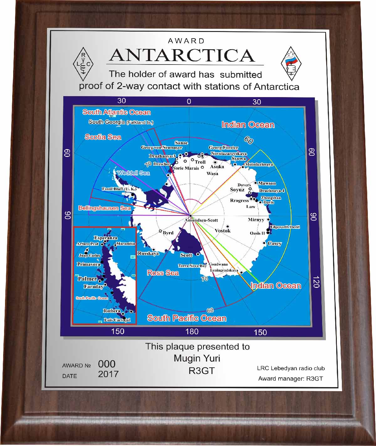 Для получения диплома необходимо провести 5 QSO c радиостанциями работающими из Антарктиды.