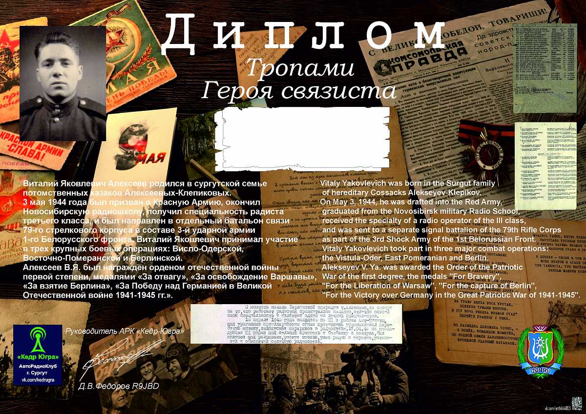 Положение дипломной программы радиолюбителей Ханты-Мансийского автономного округа – Югра Города Сургута АРК «Кедр-Югра». «Тропами Героя связиста»
