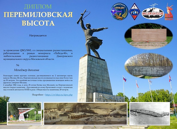 Диплом «Перемиловская высота» учреждён при информационной поддержке Российского клуба радионаблюдателей и Клуба любителей дальней радиосвязи «Miller-DX-Club» в память о защитниках северных подступов к столице осенью-зимой 1941 года.