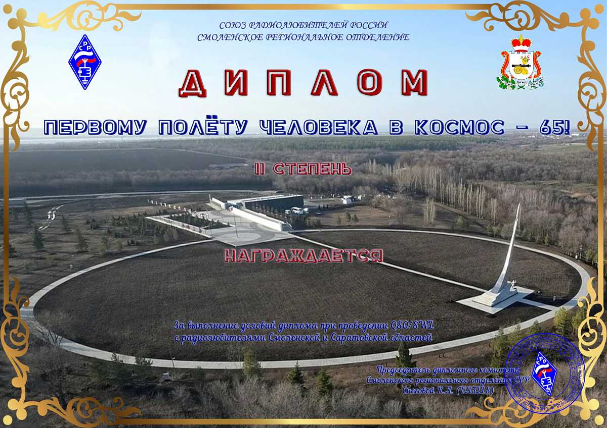 Радиолюбителям Смоленской и Саратовской областей для получения диплома необходимо провести не менее 65 QSO.