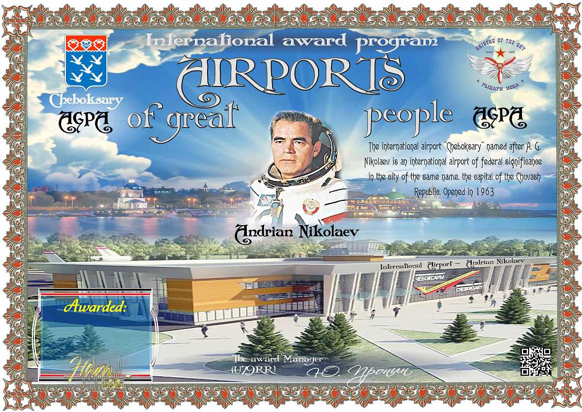 Очередным дипломом в этой серии совет клуба учредил диплом, посвящённый международному аэропорту г. Чебоксары, носящего имя Андриана Николаева. 3-й советский космонавт (5-й в мире), дважды Герой Советского Союза, генерал-майор авиации, лётчик-космонавт СССР. А.Г. Николаев родился 5 сентября 1929 г., п. Шоршелы, Мариинско-Посадский район, Чувашская АССР.