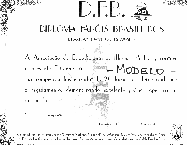 Базовый диплом: необходимо провести QSO с 20 бразильскими маяками. За каждые дополнительные 10 маяков выдаются наклейки.