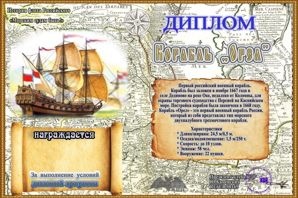В рамках дипломной программы Клуба дипломированных радиолюбителей - «История флота Российского» вашему вниманию предоставляется диплом «Корабль “Орел”».