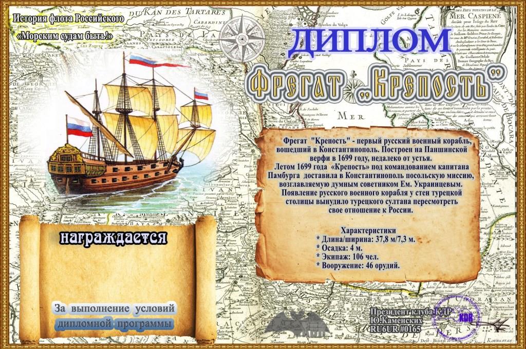 В рамках дипломной программы Клуба дипломированных радиолюбителей - «История флота Российского» вашему вниманию предоставляется диплом «Фрегат “Крепость”».