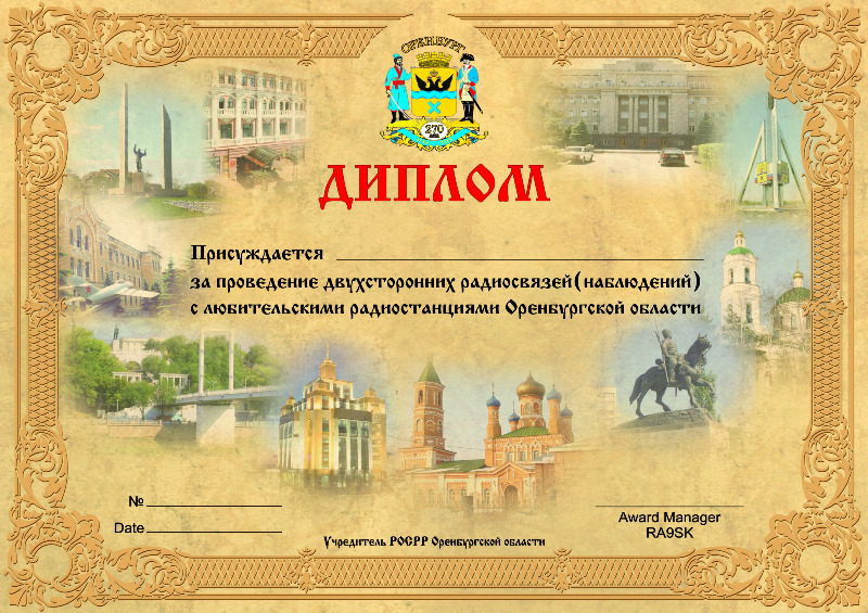 Диплом учрежден в честь 270-летия г. Оренбурга. Выдается радиолюбителям России и стран СНГ.