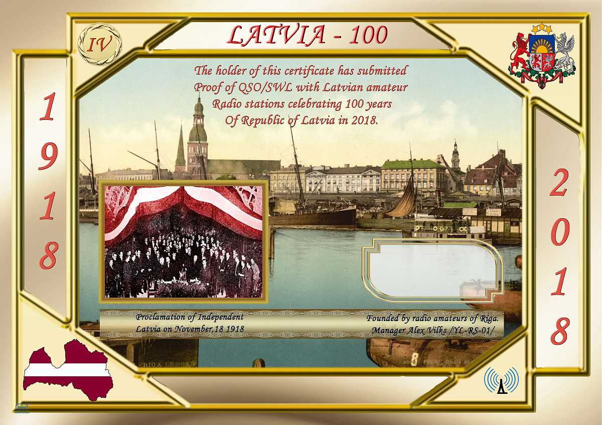 1. Для получения диплома необходимо проводить радиосвязи со станциями Латвии- YL, в период 01.01.2018 до 31.12.2018.
