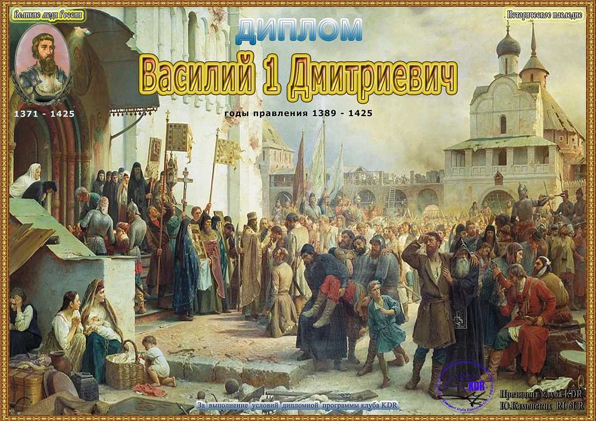 В рамках дипломной программы Клуба дипломированных радиолюбителей«Великие люди России - Историческое наследие» (первая часть программы «От Рюрика до Николая II») вашему вниманию предоставляется диплом «Василий 1 Дмитриевич», для получения которого необходимо набрать 1000 очков. Связи на диплом засчитываются с 23 декабря 2020 года, диплом бессрочный.