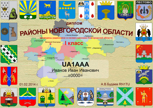 Диплом является электронным и подразделяется на 3 класса. Для выполнения условий необходимо провести радиосвязи с 7, 14 и 22 различными административными районами Новгородской области, соответственно для 3, 2 и 1 классов диплома.