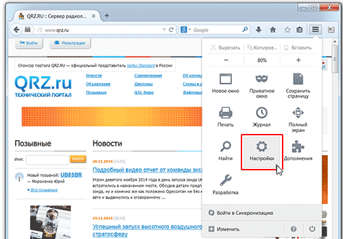 1. Откройте Firefox и в адресной строке напишите qrz.ru, нажмите Enter, чтобы вы оказались на главной странице QRZ.RU.