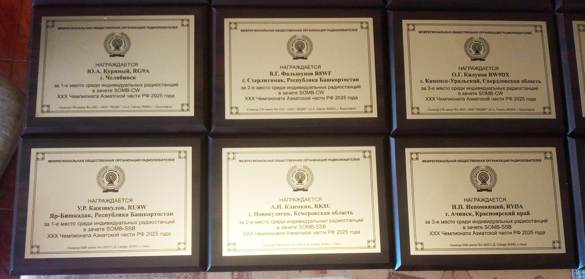 - Спонсор основных призов в SOMB-SSB – C.Д. Сиберт, RN9N (г. Омск) – награждение настенными наградами ССФ за 1-3 места;